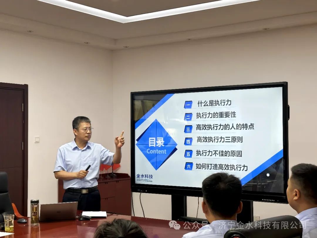 為進(jìn)一步提高員工執(zhí)行力,提高責(zé)任、服務(wù)意識(shí),提升管理效能,推動(dòng)公司高質(zhì)量發(fā)展。5月30日上午,金水科技邀請(qǐng)北京攜鑄偉業(yè)管理咨詢(xún)有限公司總經(jīng)理高東平擔(dān)任講師,作題為“打造以結(jié)果為導(dǎo)向的高效執(zhí)行力”培訓(xùn),公司主管及以上人員參加培訓(xùn)。